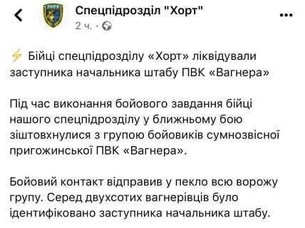00:00 Бійці ЗСУ з підрозділу "Хорт" ліквідували в Україні заступника начальника штабу ПВК "Вагнера"