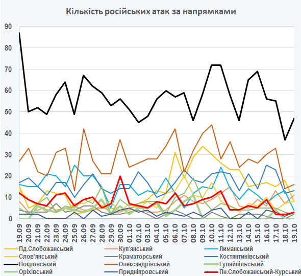 09:05 Інтенсивність російських атак на різних напрямках (за даними зведень Генерального штабу ЗСУ):