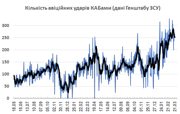 11:55 Протягом минулого тижня російська армія застосувала проти України 1764 корегованих авіаційних бомб, що менше, як було попереднього тижня (було 1980), випливає зі щоденних повідомлень Генштабу ЗСУ.